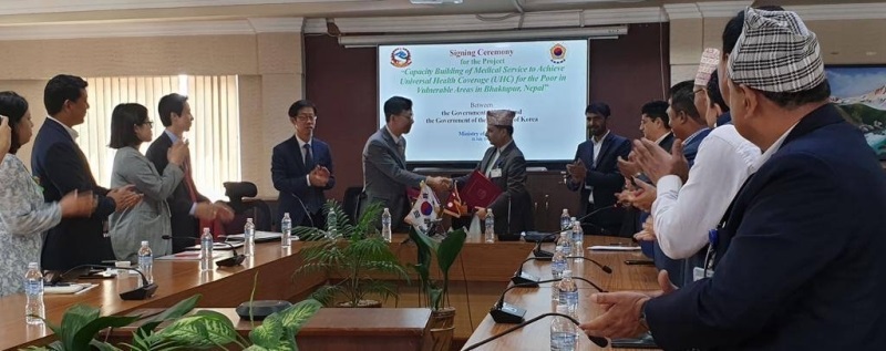 As per the MoU, the Korean Government through Korea International Cooperation Agency (KOICA) will spend US$ 9.5 million (equivalent to Rs 1.25 billion) for this project for five years. The Project aims to enhance the capacity of medical infrastructure and professionals for quality hospital management, infection control, and improved coverage of public health insurance to attain the Universal Health Coverage (UHC) in Bhaktapur, the Finance Ministry said in a press release.